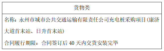 二、项目名称:永州市城市公共交通运输有限责任公司充电桩采购项目(康济大道首末站、日升首末站)