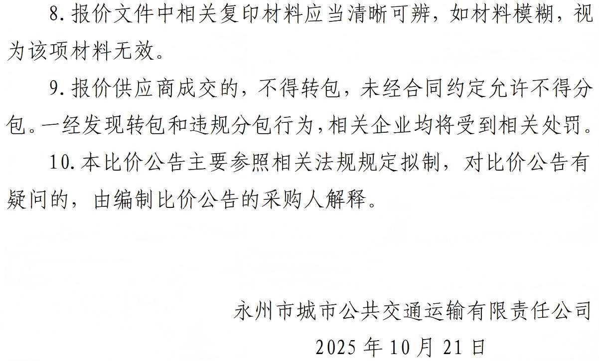 上一篇: 永州公交佳馨贸易公司招标供应商比选公告